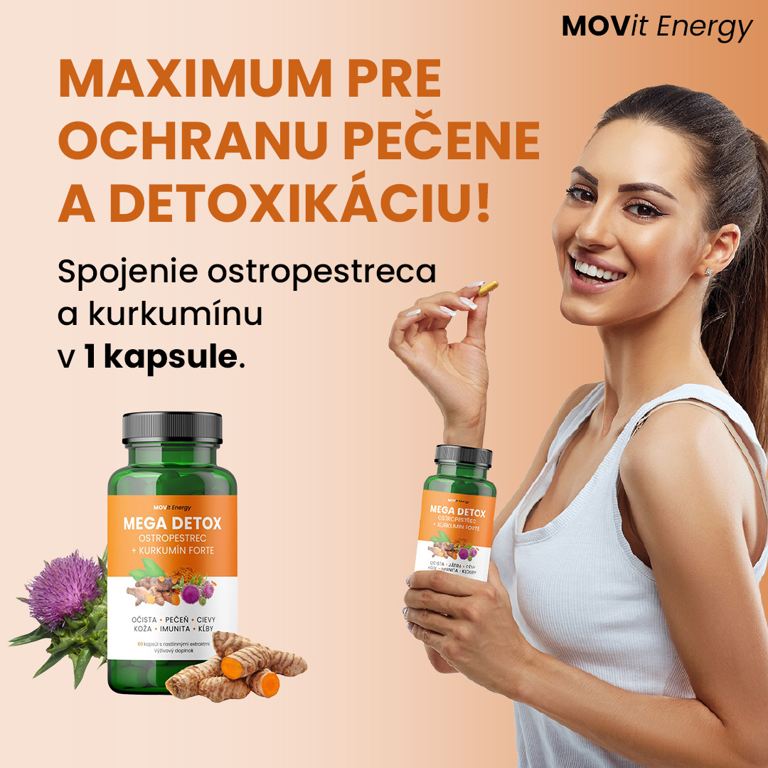 MOVit Mega Detox je prémiový výživový doplnok stravy obsahujúci 60 vegánskych kapsúl, ktorý vďaka obsahu ostropestreca mariánskeho, kurkumínu a čierneho korenia, zregeneruje vaše detoxikačné orgány a pomôže od vás odlákať nepríjemné zdravotné komplikácie. Tie sa spravidla spájajú so zlým stravovaním, či dýchaním splodín z ovzdušia.