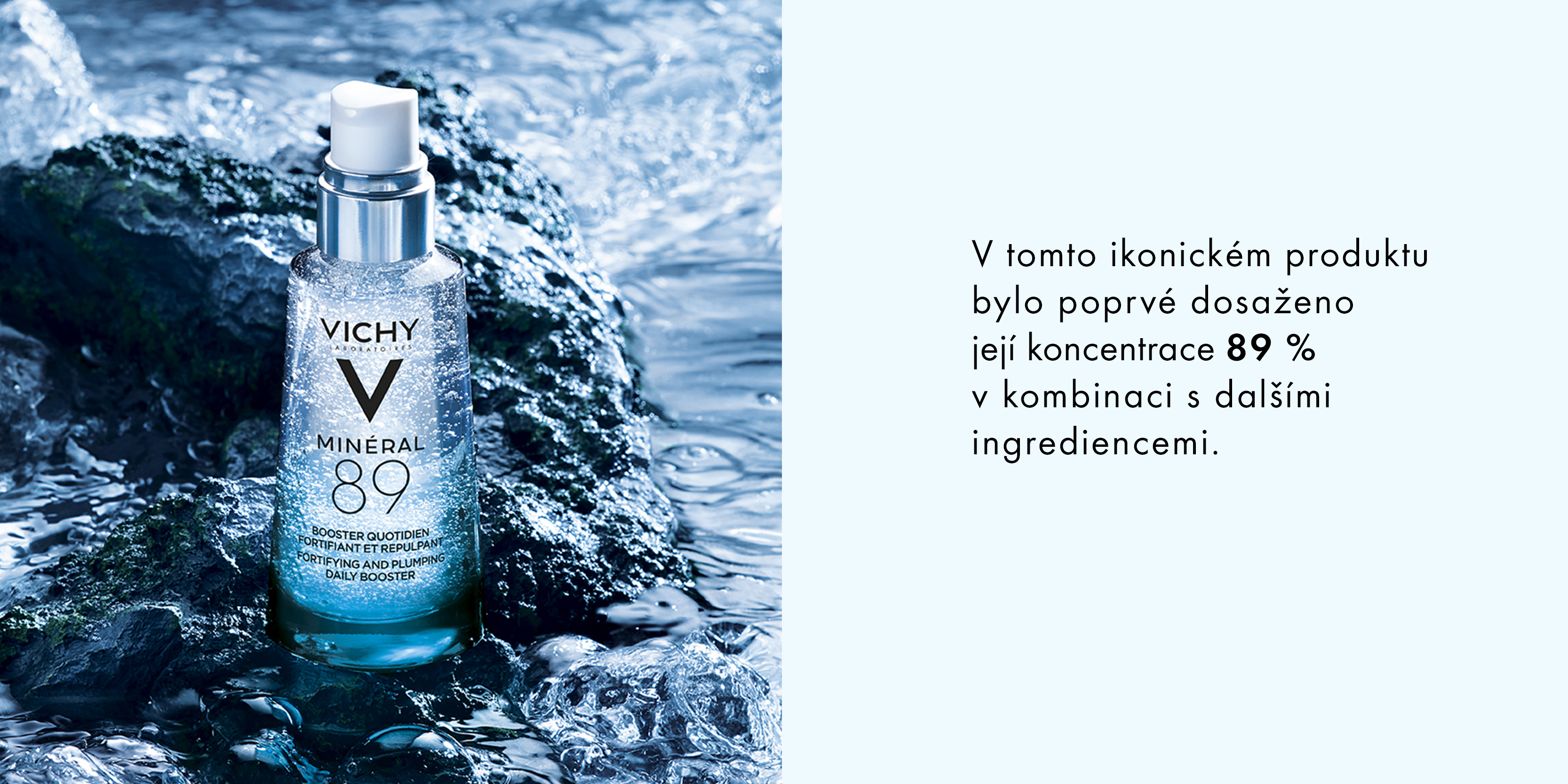 Laboratóriá Vichy dosiahli výnimočné koncentrácie Minalizujúcej termálnej vody až v 89% v spojení spolu s vysokou dávkou kyseliny hyalurónovej a ďalšími 9 zložkami.