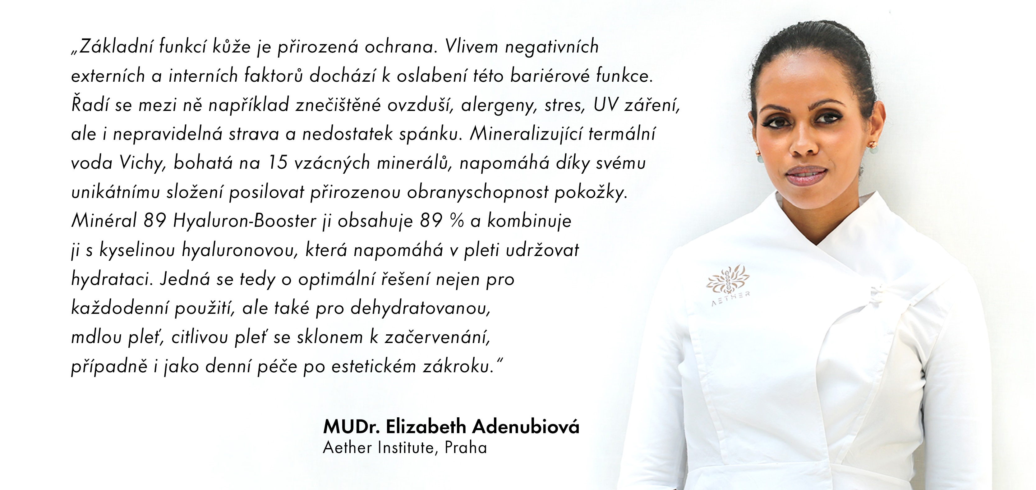 Mimoriadna sila spočívajúca v unikátnej kombinácii minalizujúcej termálnej vody Vichy s obsahom až 89%, spojenej s kyselinou hyalurónovou. Jedinečná kombinácia Vichy minalizujúcej termálnej vody vôbec prvýkrát v koncentrácii 89% v spojení s kyselinou hyalurónovou prírodného pôvodu.